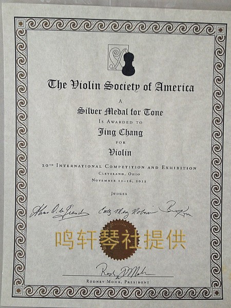 琴师:常静(琴内有常静师傅亲笔签名标签) 制琴师介绍:常静(国际获奖琴师)2012年美国VSA国际制琴比赛获得小提琴音质银奖得主